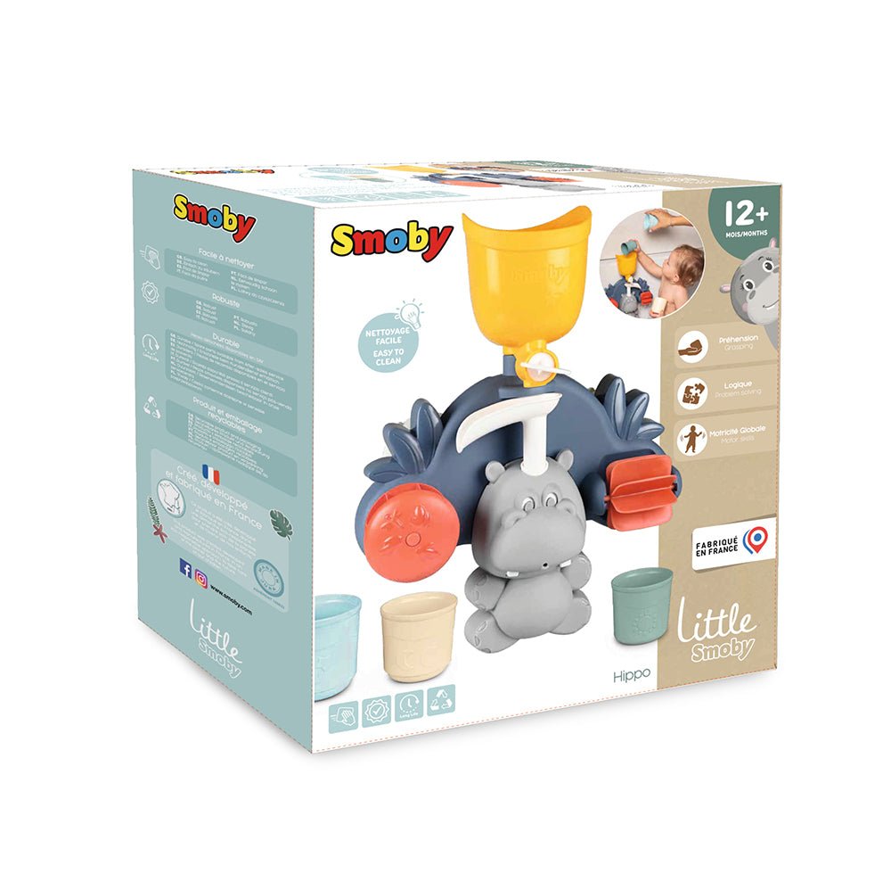 Avec Little Smoby Hippo, le prochain bain sera un pur moment de plaisir. Le réservoir d'eau de l'hippo se remplit à l'aide des 3 gobelets. En ouvrant ensuite le robinet, l'eau jaillit de la bouche de l'hippo ou fait tourner les roues hydrauliques - selon la position du curseur sous le réservoir d'eau. Celui-ci peut être facilement tourné vers la gauche, la droite ou le centre.