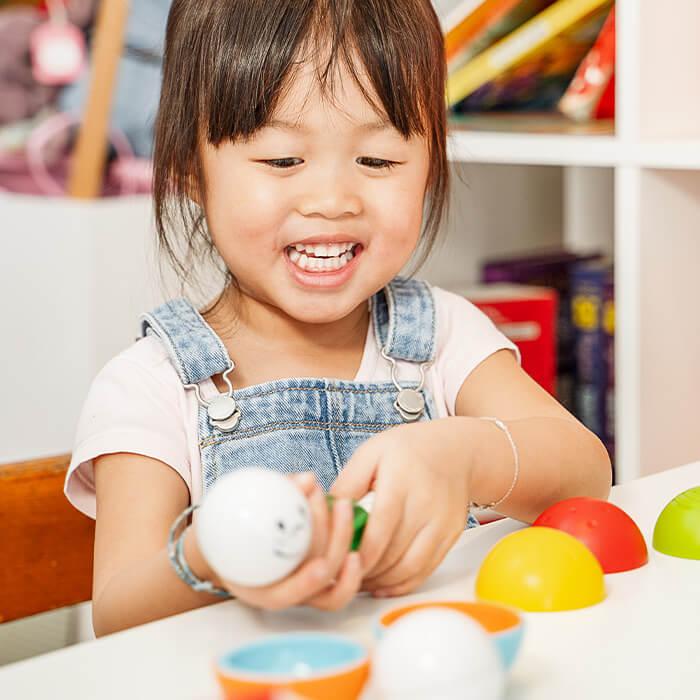 Peux-tu trouver où se cachent les drôles de boules ? Essayez d'empiler les pièces magnétiques les unes sur les autres ou jouez à cache-cache avec les boules aux visages amusants !