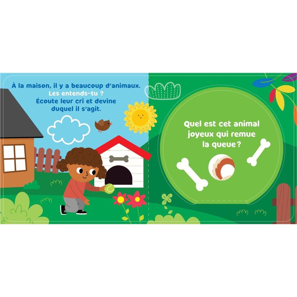 Grâce à ce livre sonore, les jeunes enfants découvriront avec plaisir les cris des animaux de compagnie. Ils ne pourront résister l'envie de soulever les volets afin d'entendre leurs bêtes préférées encore et encore.