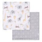 Dotées d'un motif animalier aventureux et d'un élégant imprimé géométrique gris et blanc, ces couvertures, fabriquées à partir de mousseline douce 100 % coton, sont idéales pour emmailloter ou servir de couverture d'allaitement.