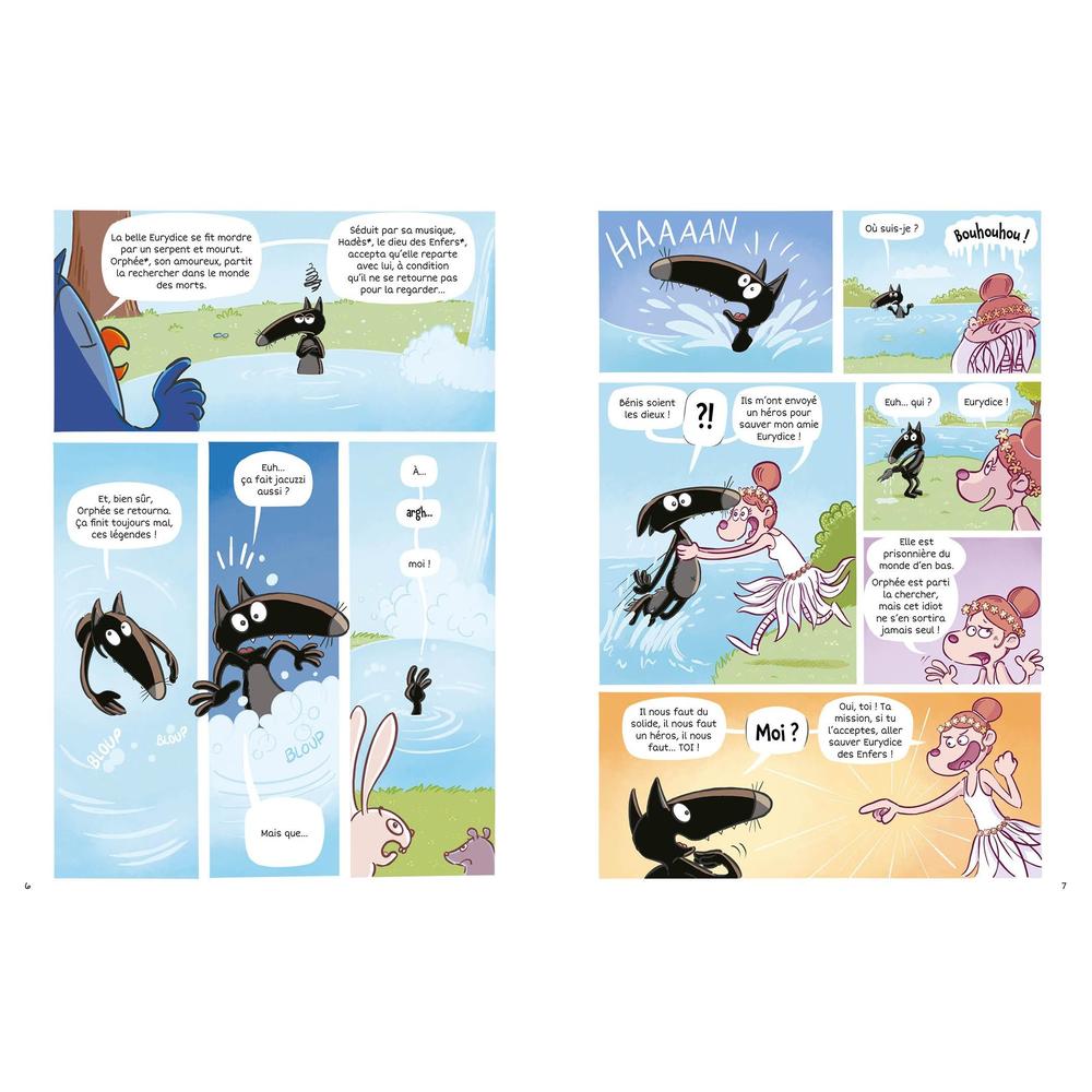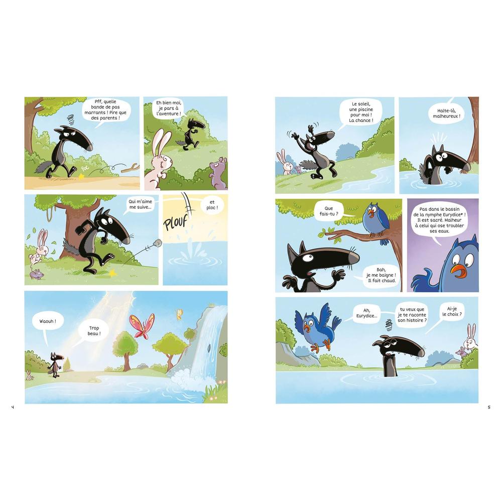Alors qu'il se promène tranquillement en forêt, Loup se retrouve - bien malgré lui - missionné par une nymphe pour sauver Eurydice et Orphée, perdus dans le monde des Enfers... Loup plonge alors dans le monde merveilleux, dangereux, et délicieusement foutraque, des dieux et déesses grecs !