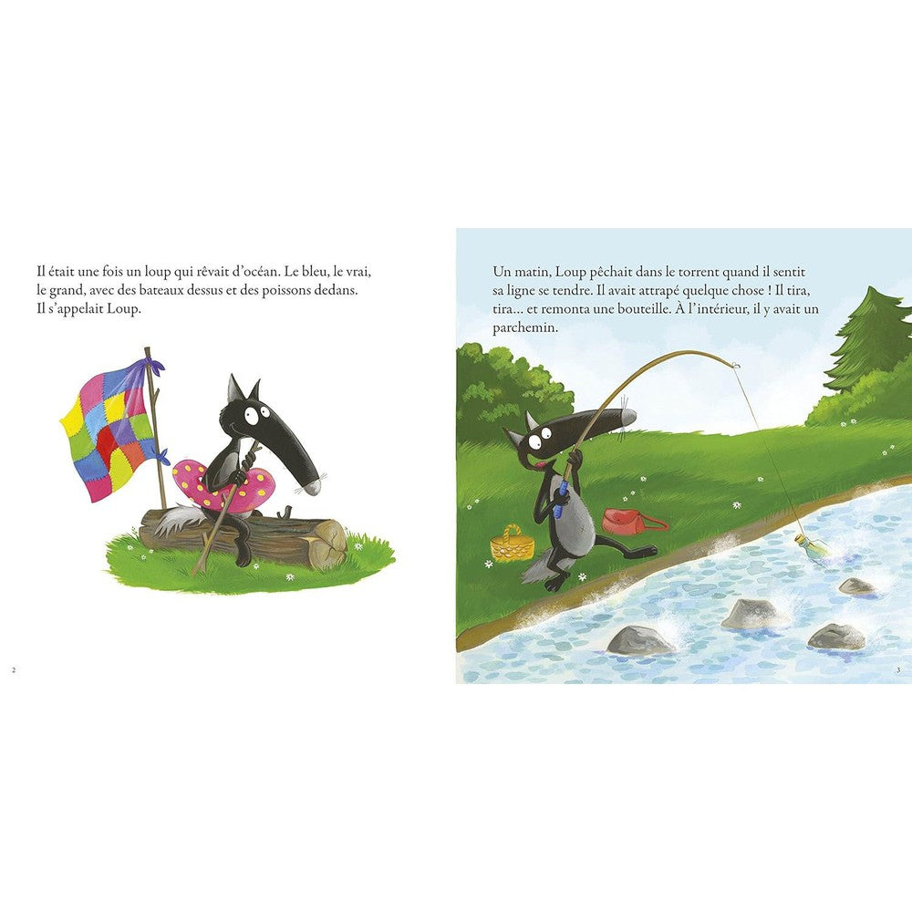 Loup a repêché une bouteille contenant la carte au trésor du pirate Barbeloup. Il prend la mer sur un voilier en quête d'aventures.