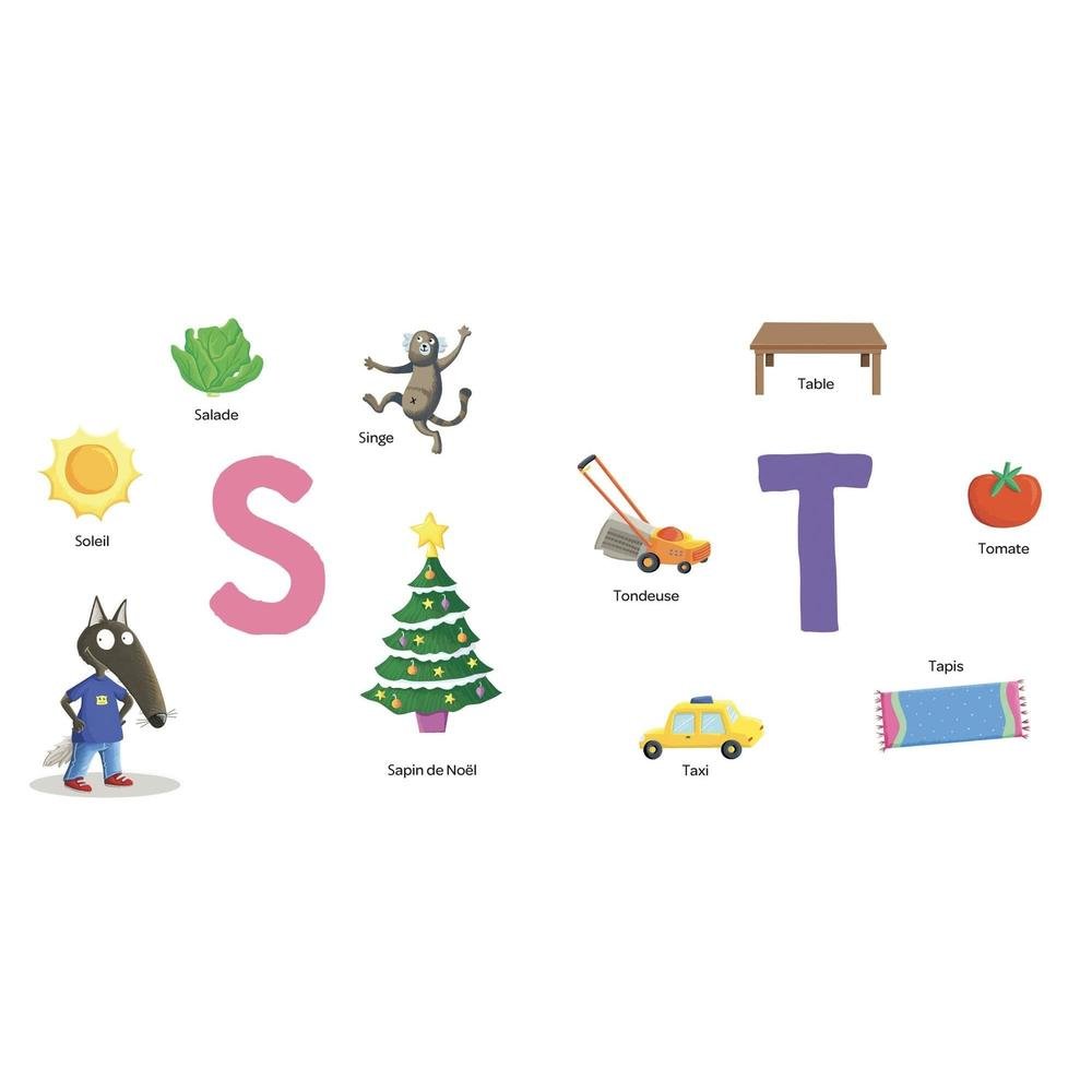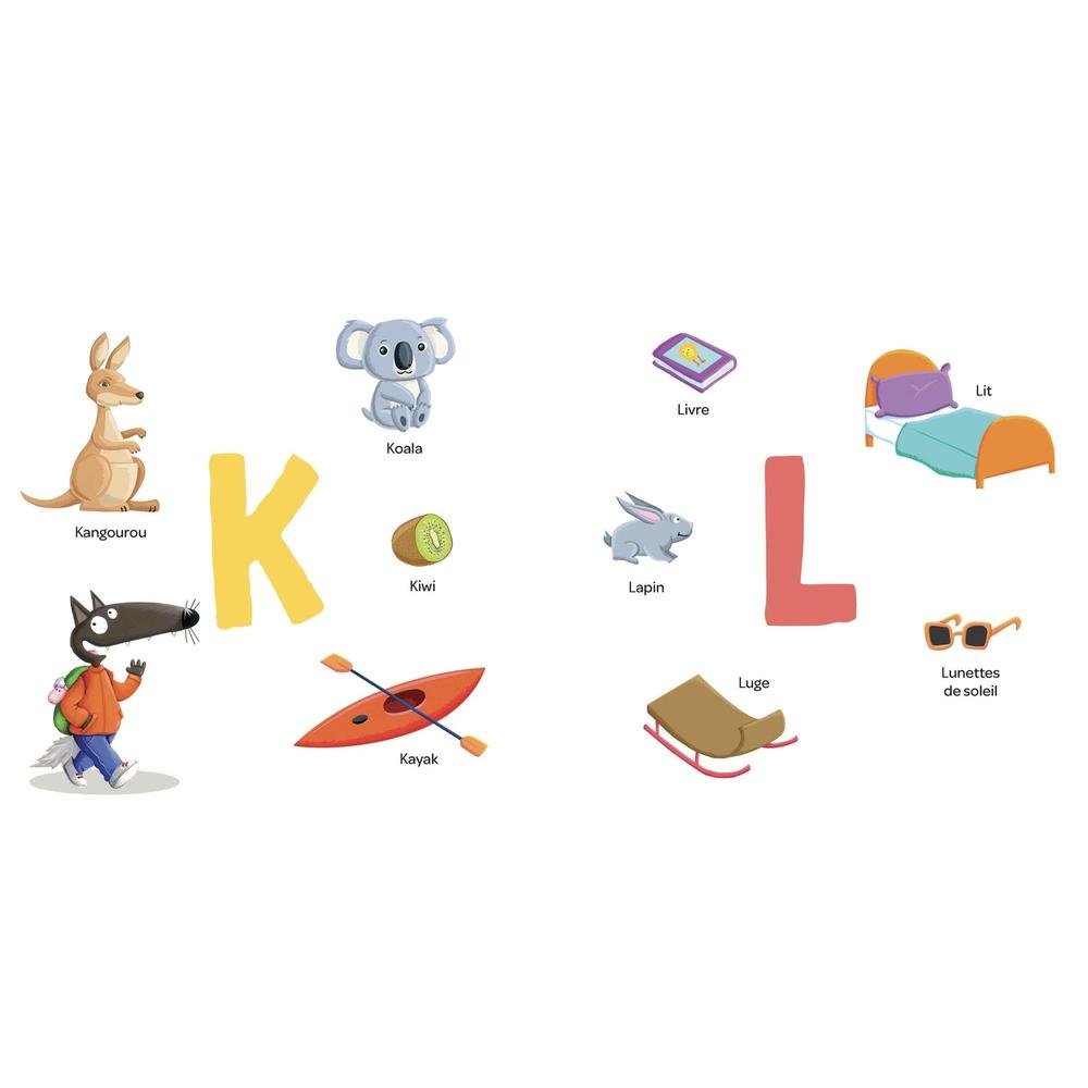 Sur chaque page, la lettre tracée en grand et des mots commençant par celle-ci pour commencer à apprendre à reconnaître les lettres et enrichir son vocabulaire !