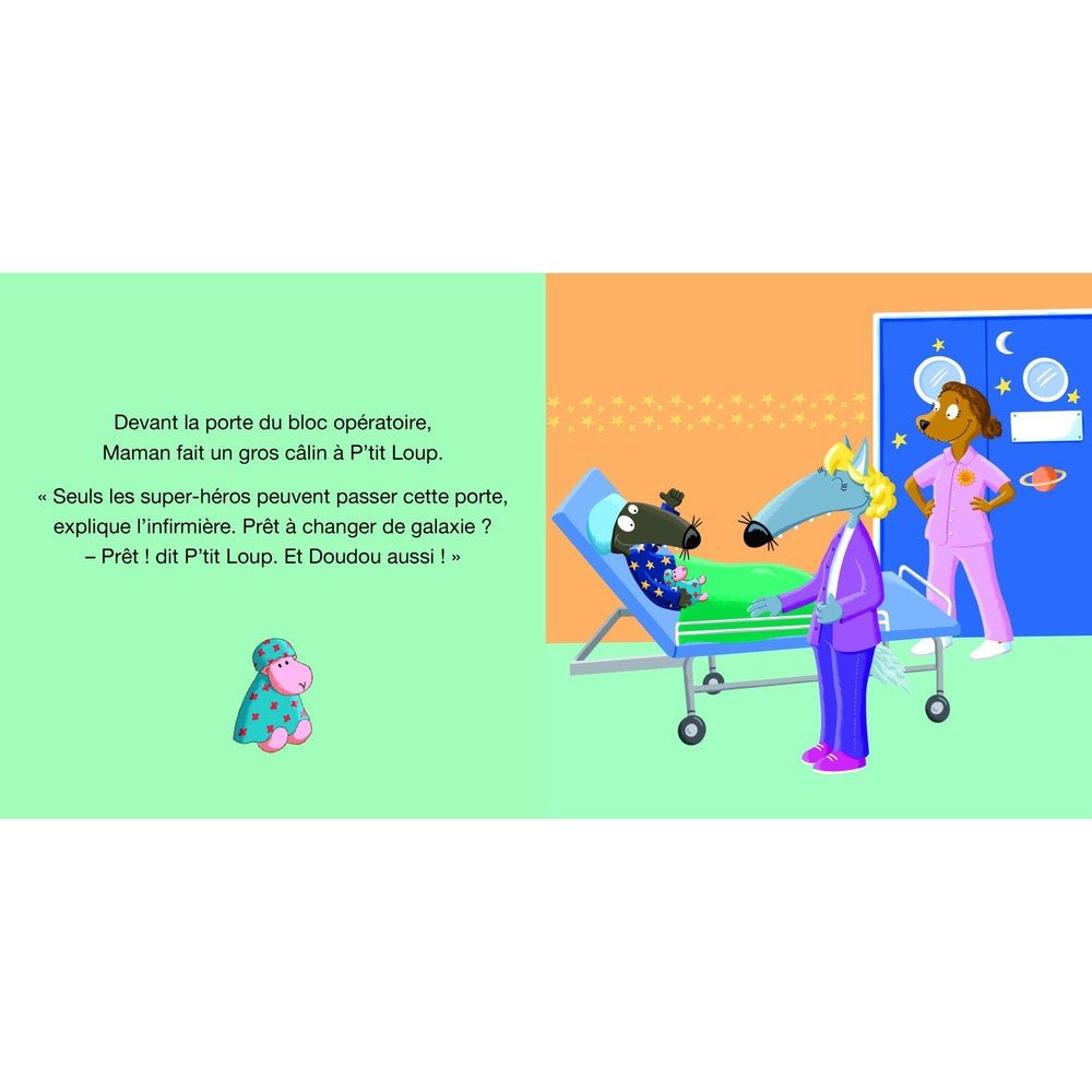 P'tit Loup doit aller à l'hôpital pour se faire opérer. Il a très peur. Les médecins lui font des examens et le rassurent: tout va bien se passer! Et c'est vrai!