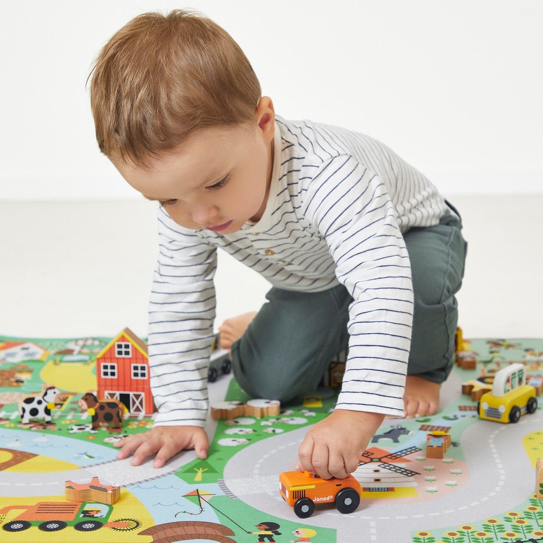 - Complétez l'univers avec vos véhicules et blocs en bois Janod.