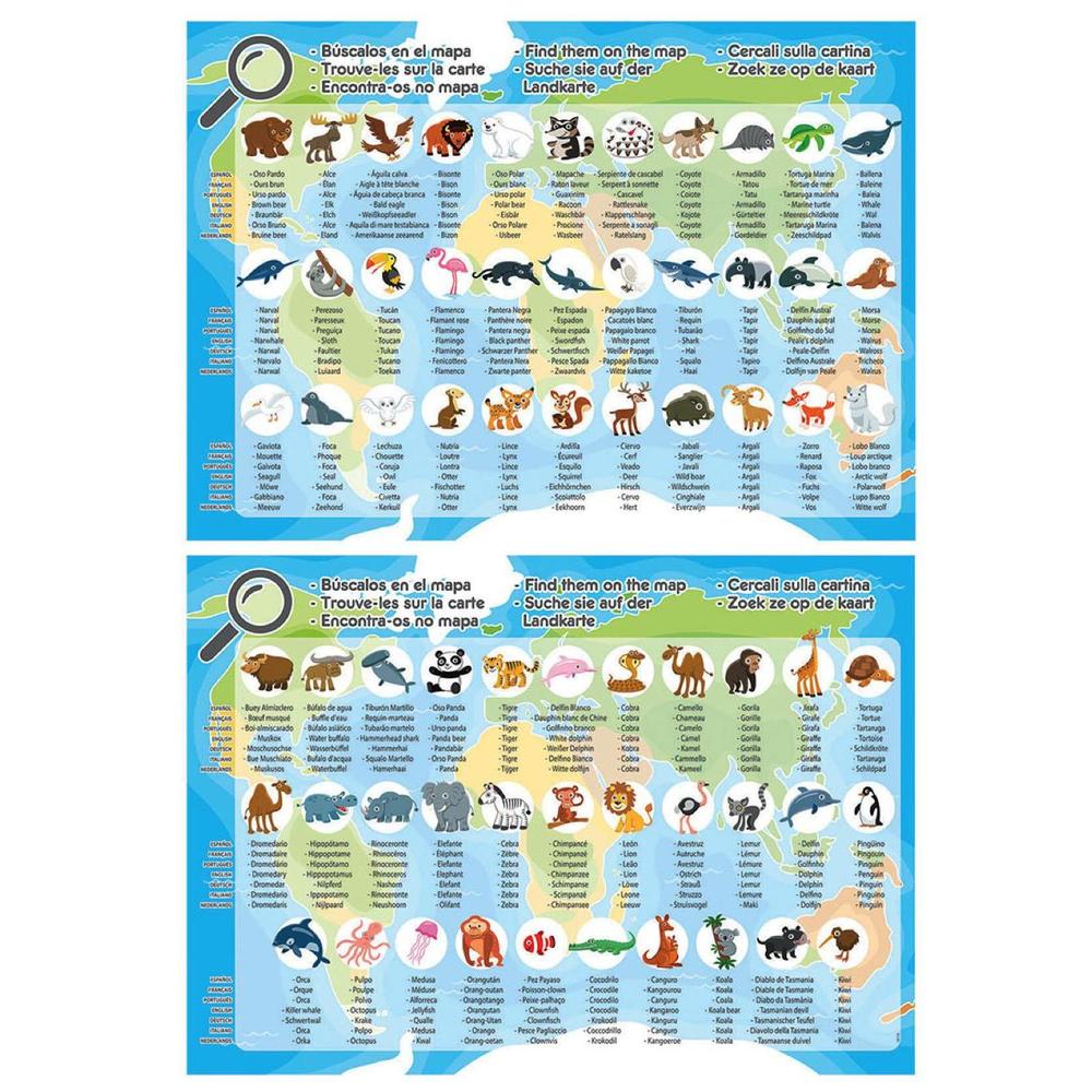 - Le casse-tête vient avec une planche en couleur avec des illustrations et les noms des animaux. Trouve-les sur la carte !
