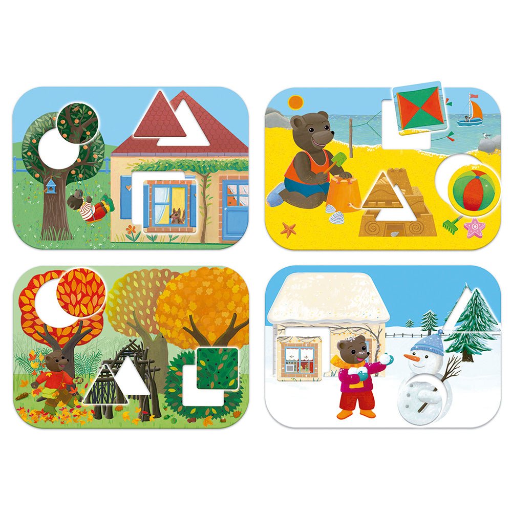 Le jeu pour apprendre les formes géométriques avec le PETIT OURS BRUN. Compare les formes et les tailles et apprends à identifier et à différencier les figures géométriques les plus simples: carré, triangle, cercle.
