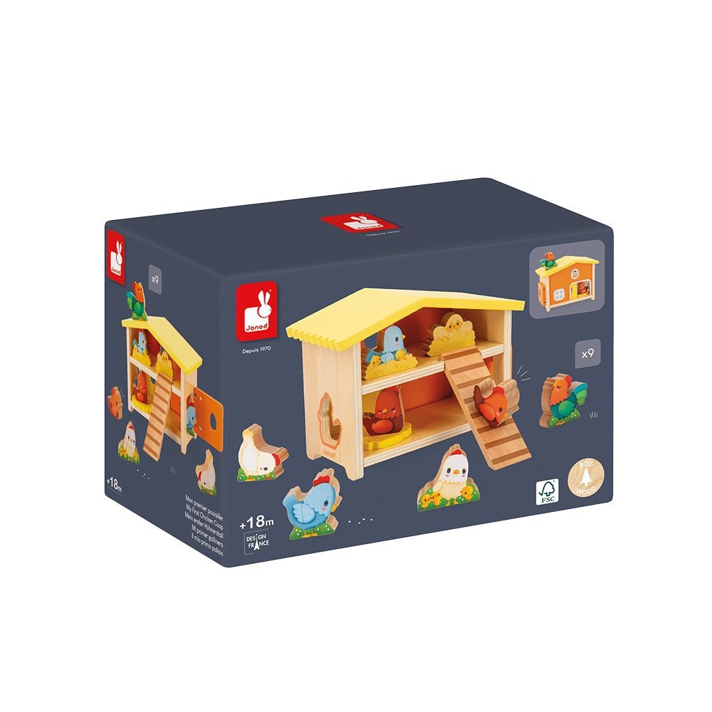 On entend au loin le chant du coq ! Le jour se lève à la ferme et bébé va pouvoir profiter de son poulailler en bois pour donner le ton de cette journée, dès 18 mois.