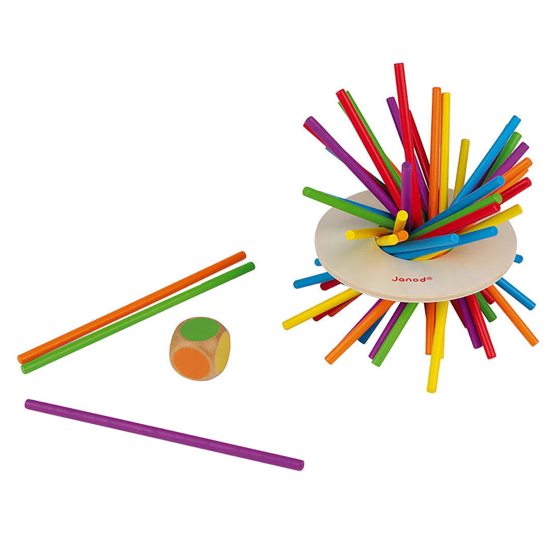 - Inclus 36 bâtons, un disque et un dé en bois.