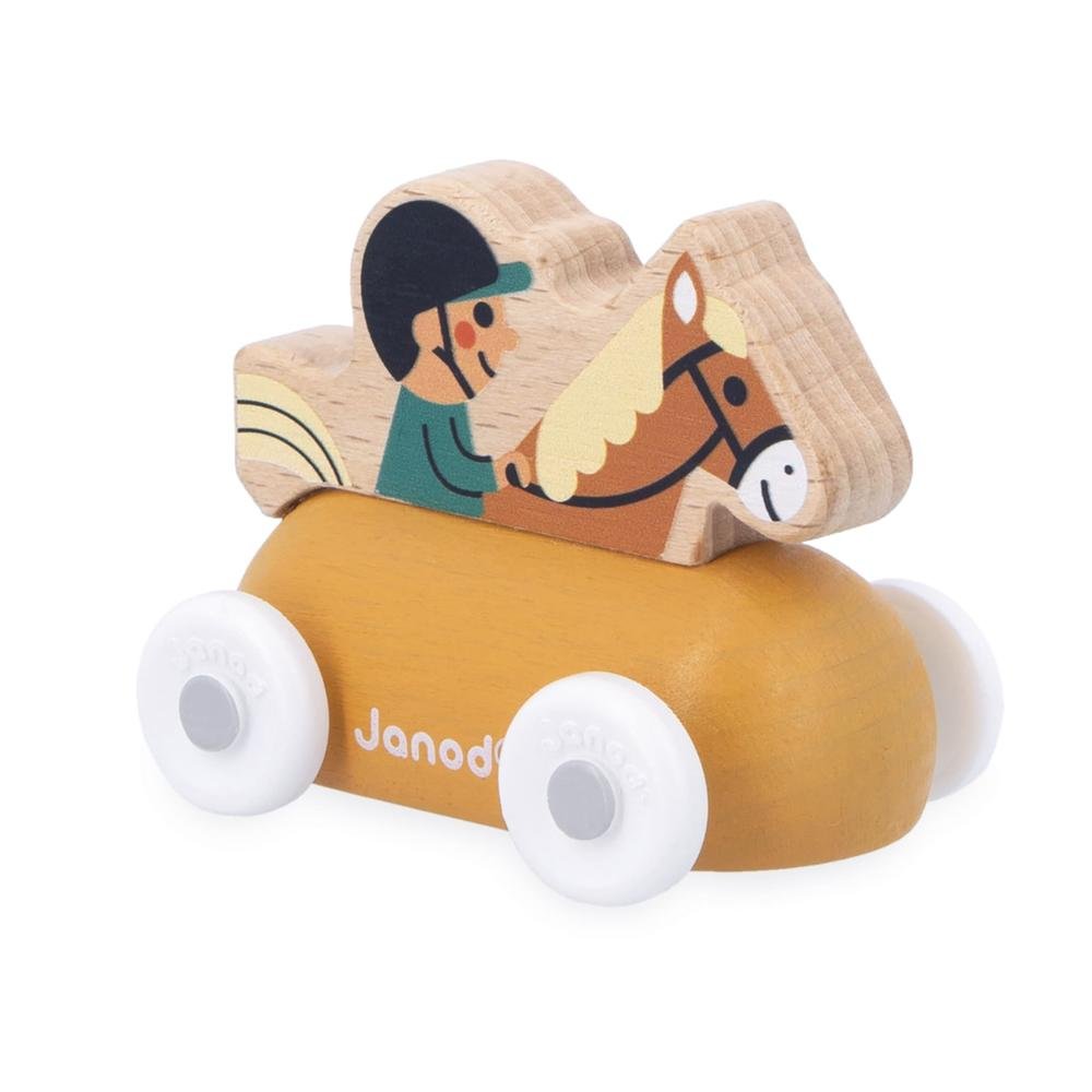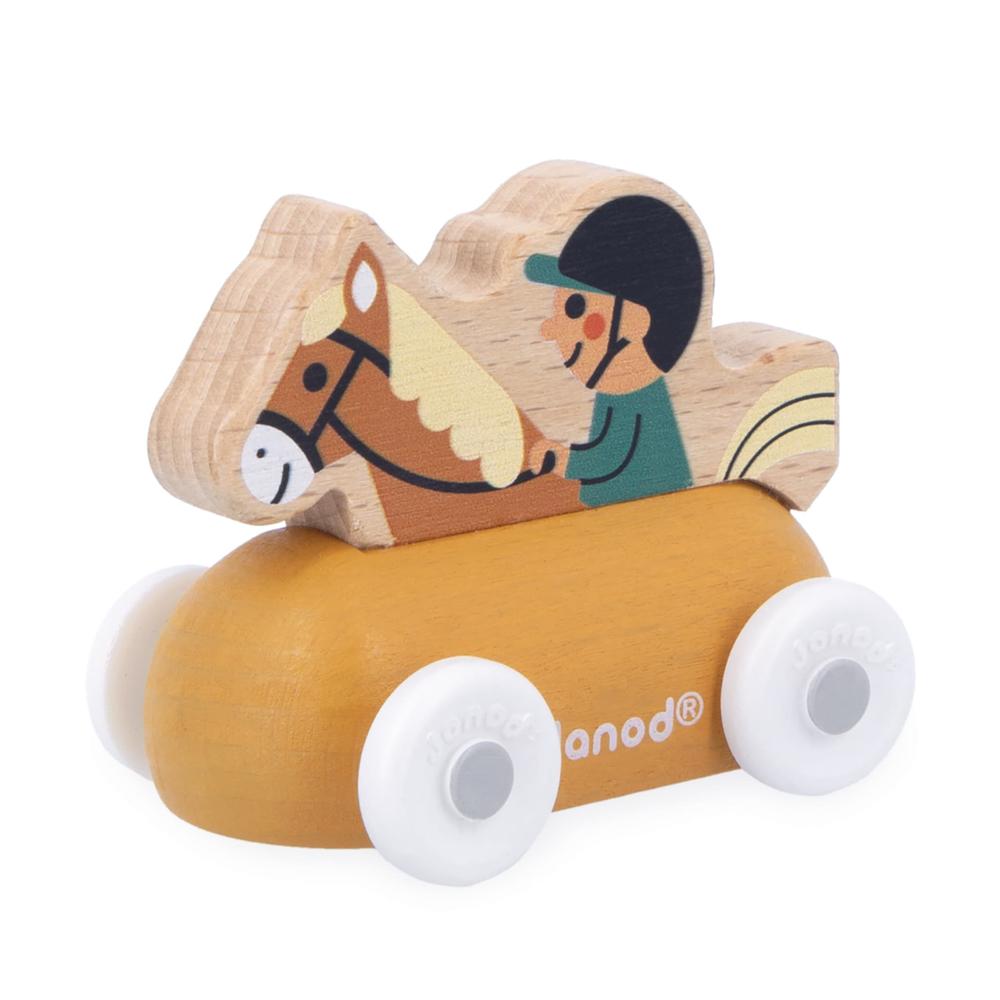 Cette voiture à pousser sur le thème de l'équitation est un compagnon idéal pour développer leur imagination.