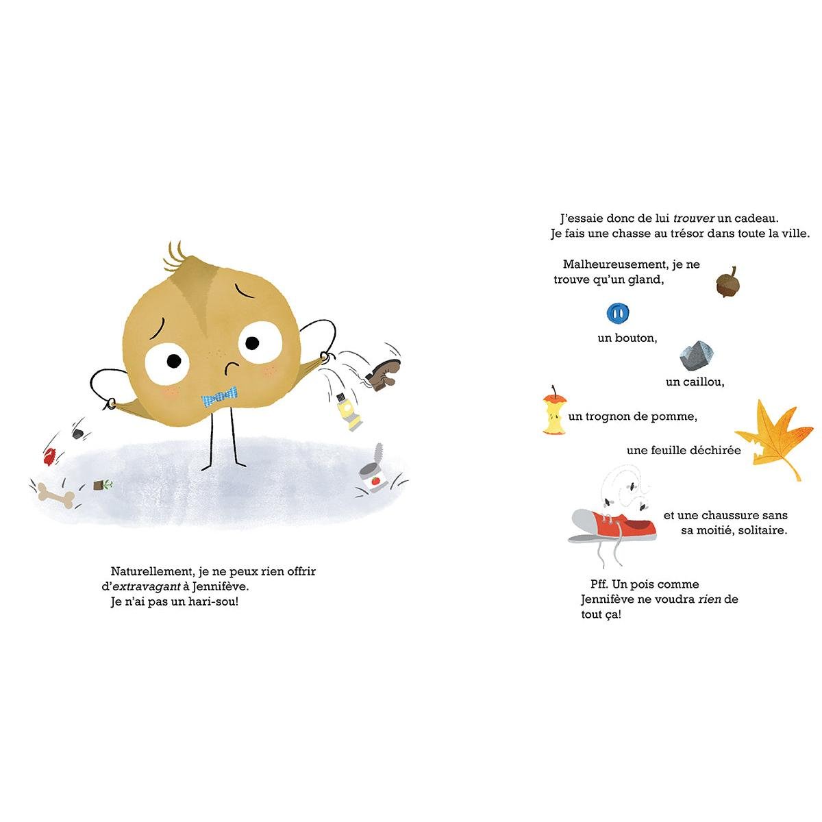 Lorsque le pois chic pige le nom de la plus sympa des pois sympas, Beanadette, pour l’échange annuel de cadeaux, il ne se sent pas très joyeux ni festif, mais plutôt nerveux! Beanadette s’attend certainement à recevoir le cadeau le plus génial qui soit. Le pois chic trouvera-t-il le cadeau parfait à temps pour la fête?