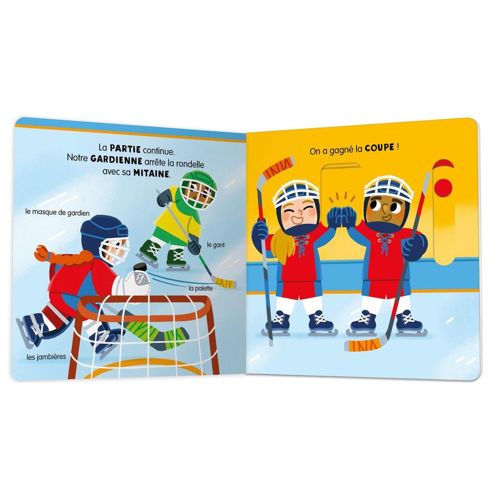 Découvre le hockey sur glace grâce à des mécanismes simples et faciles à activer ! Sur la dernière page, amuse-toi à deviner ce qui se cache sous les flaps.