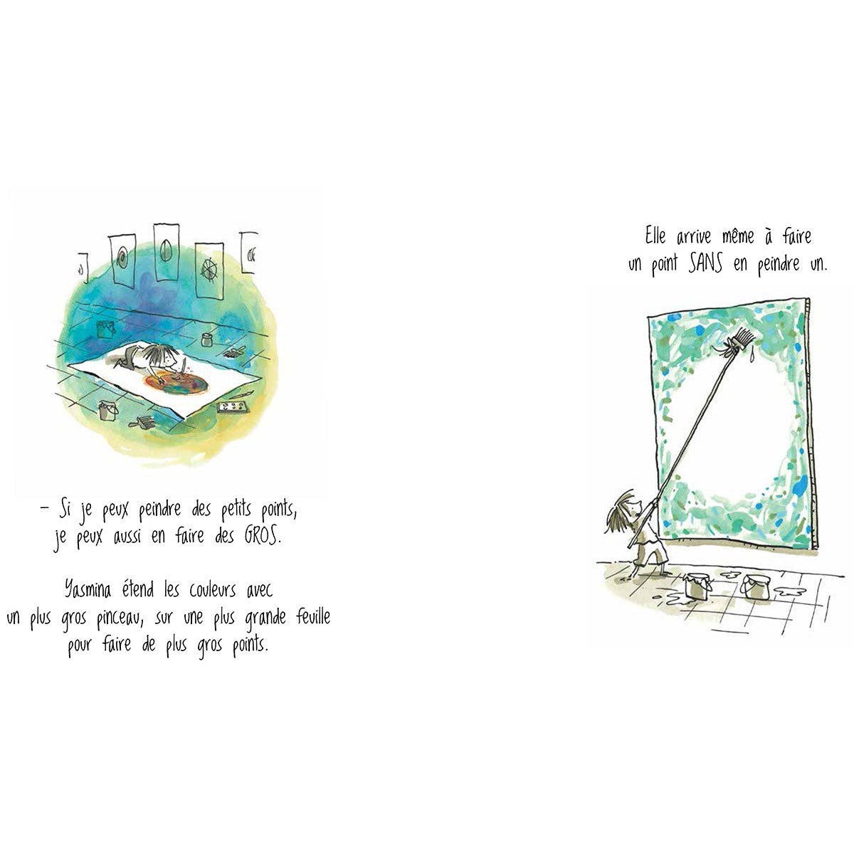 Avez-vous déjà pensé que vous n’étiez pas capable de faire quelque chose? Que c’était trop difficile, titanesque et que vous n’étiez tout simplement pas à la hauteur? C’est exactement ce que ressent Vashti, un jour, alors qu’elle est en classe d’art. À la fin du cours, une page blanche repose sur son bureau. Son enseignant lui demande de faire une marque, ou n’importe quel autre signe, puis de signer. Ce qui arrive ensuite donnera à Vashti un incroyable sentiment de confiance en elle.