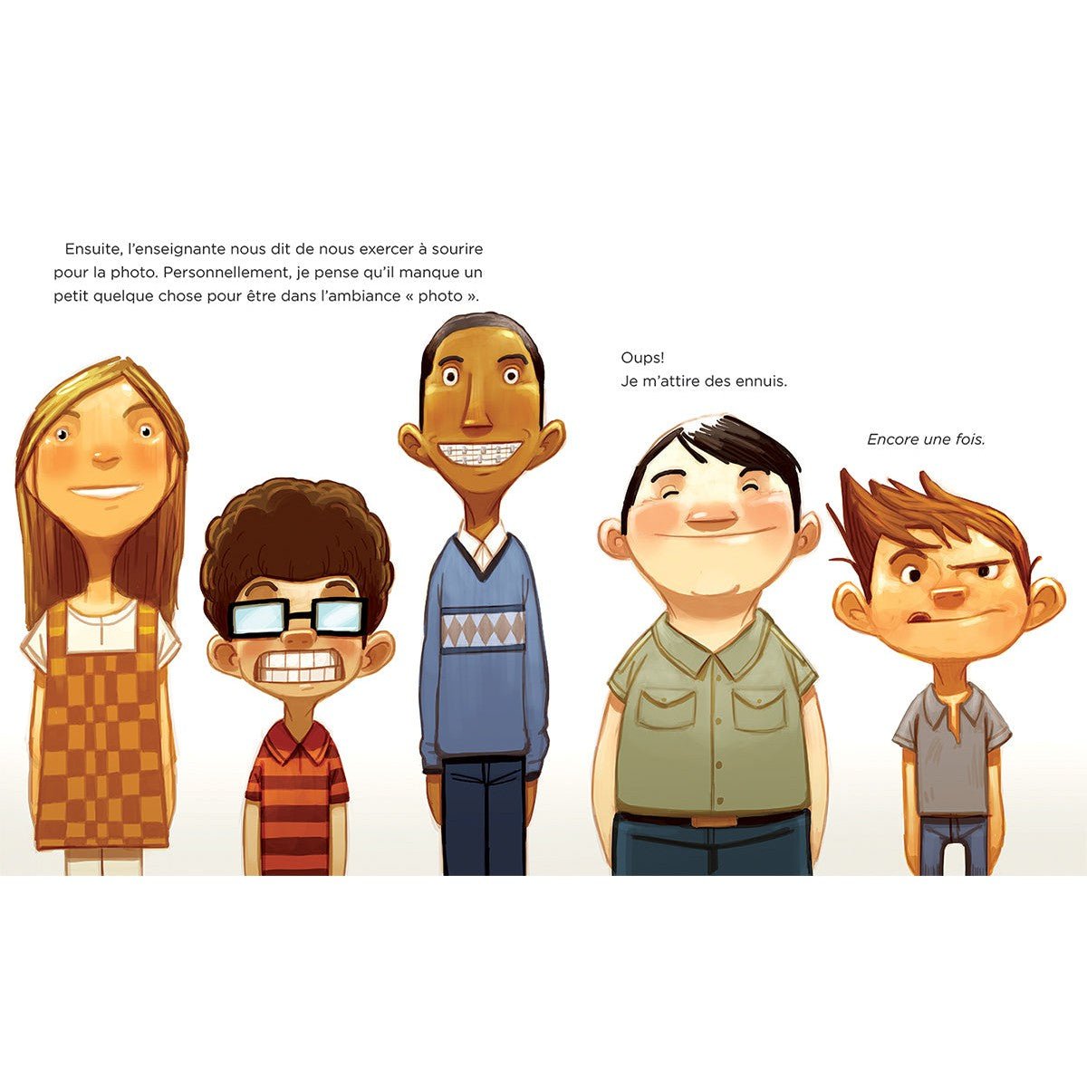 Il y a souvent un élève avec une chemise sale, le visage barbouillé ou une moue boudeuse. Pour le jeune garçon de cette histoire hilarante, la photo d'école parfaite semble impossible... Mais rien n'est décidé jusqu'au déclic de l'appareil photo!