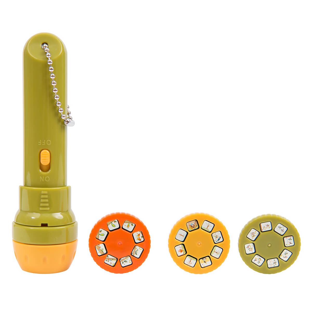 Fournie avec 3 disques racontant 3 contes différents sur le thème de la nature : "Les oiseaux font leur nid", "La chenille devient papillon" et "Les quatre saisons", cette jolie lampe torche emportera votre enfant dans un univers bucolique.