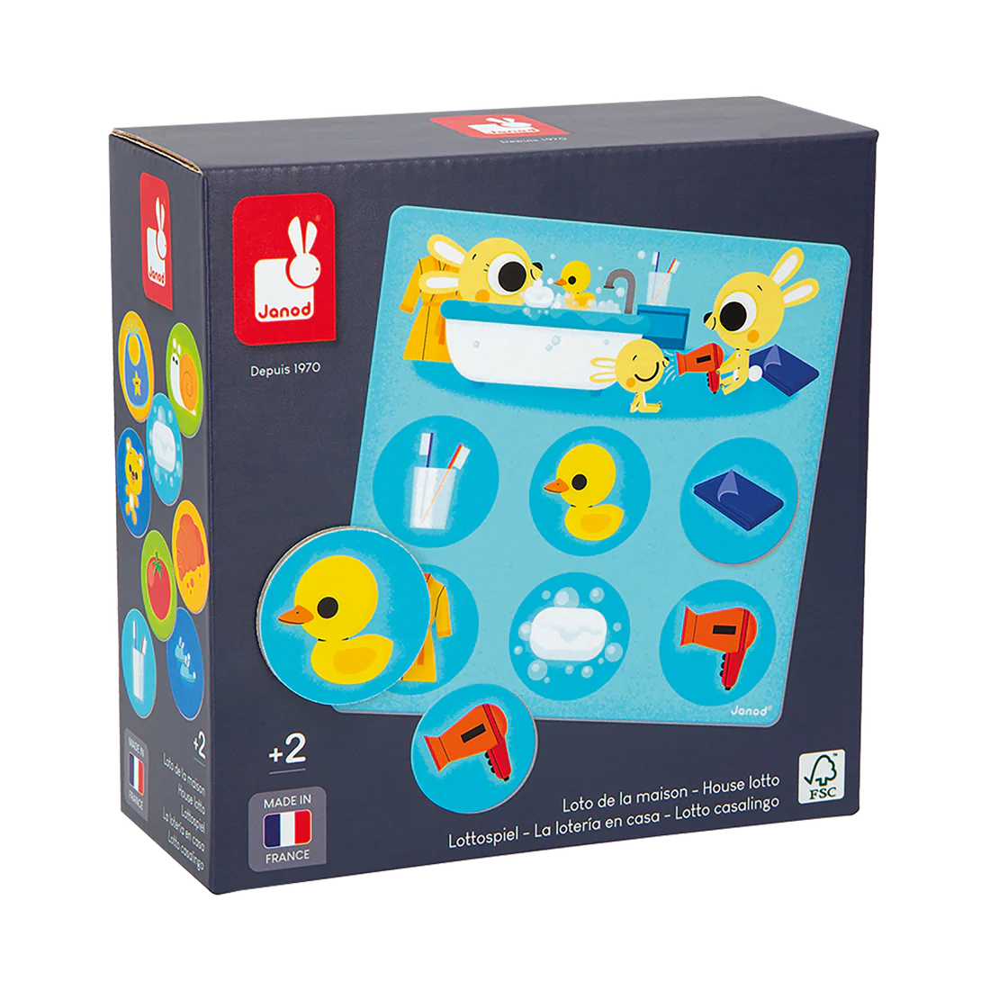 Embarquez pour une aventure d’apprentissage ludique pour les tout-petits avec ce loto composé de 4 planches et 24 jetons. Dès l’âge de 2 ans, les enfants découvrent le monde des animaux domestiques ainsi que des pièces de la maison (cuisine, chambre, salle de bain et jardin).