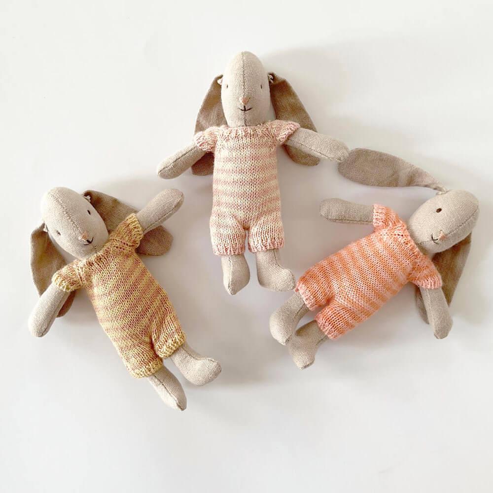 Poupée Lapin Micro en pyjama tricoté (4.25")