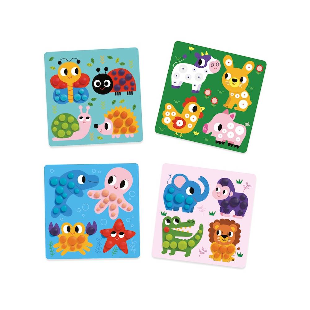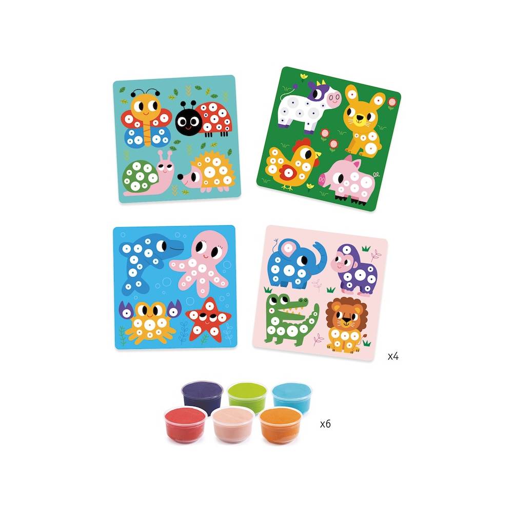 Découvrez le coffret pâte à modeler ronds de pâte de Djeco, un loisir créatif pour les enfants de 3 à 6 ans, un coffret cadeau complet pour compléter des dessins avec de la pâte à modeler. 4 tableaux à compléter avec les animaux de la savane, les animaux de la ferme, les animaux marins et les animaux du jardin.