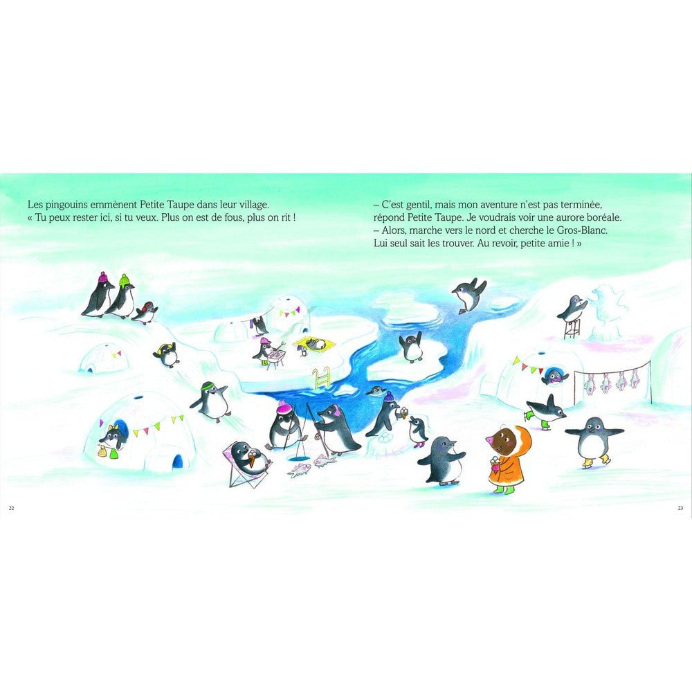 C’est l’été et au bord de la rivière, Petite Taupe s’ennuie : elle rêve de fraîcheur et d’aventure ! Alors, direction le Grand Nord.