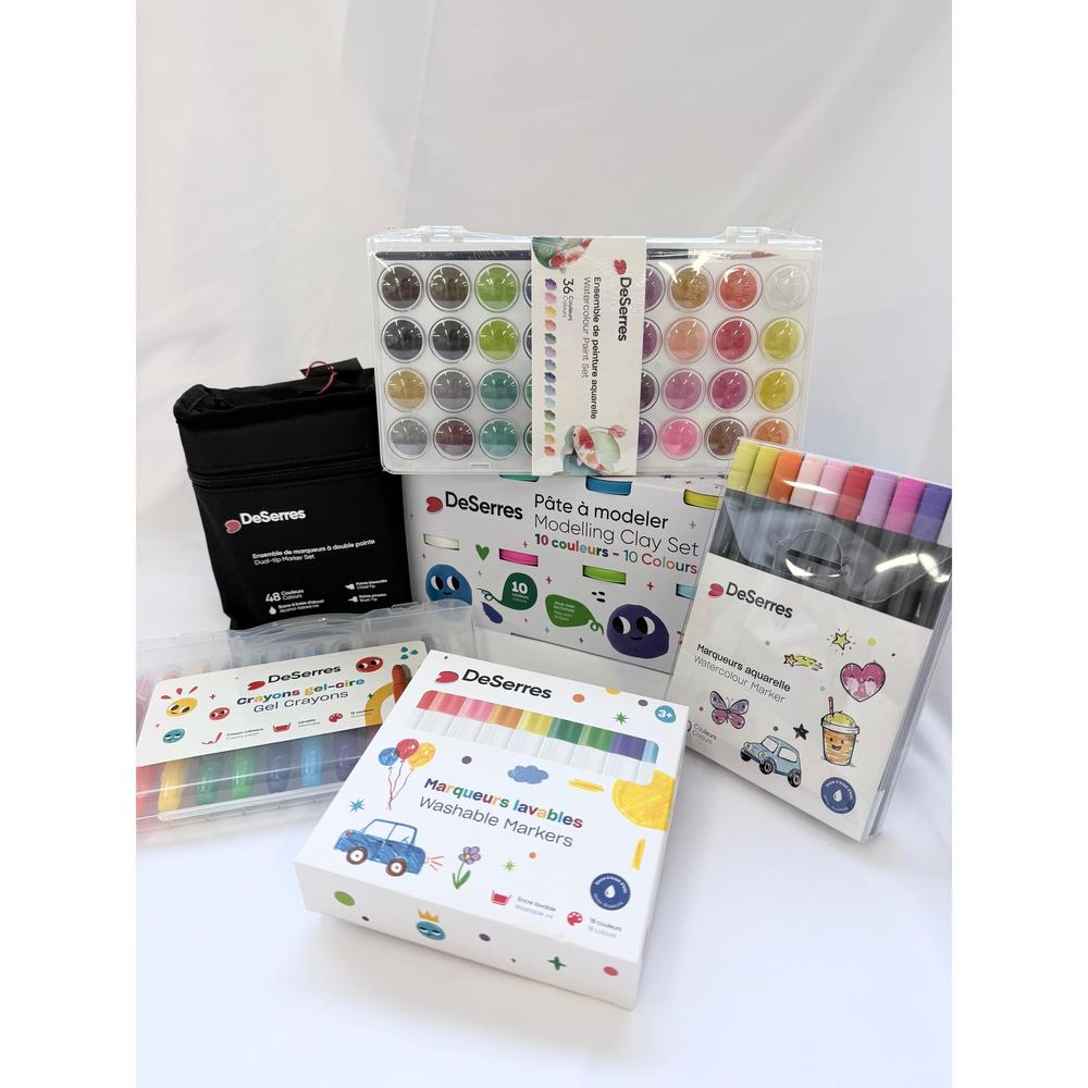 Cet ensemble regroupe 7 produits essentiels pour le dessin, la couleur, la peinture et la pâte à modeler, soigneusement sélectionnés pour accompagner les artistes en herbe de 3 ans et plus. Cet ensemble offre une variété d’outils pour des heures de jeu créatif.