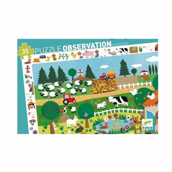 La ferme de Djeco est un casse-tête de 35 pièces illustrant une ferme colorée et remplie d'animaux! Une fois le casse-tête assemblé, l'enfant s'applique à jouer à « cherche et trouve » avec chacune des images indiquées sur le pourtour du casse-tête.
