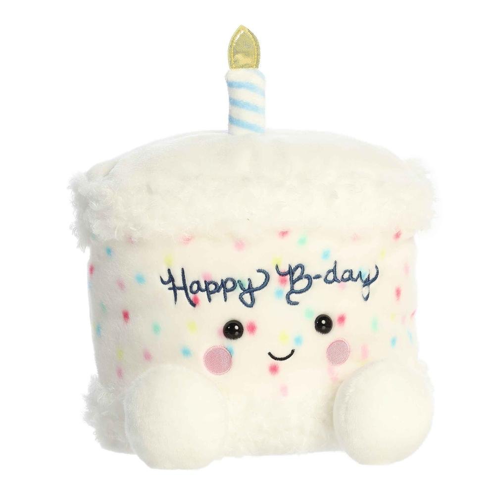 Célébrez votre anniversaire avec le gâteau « Happy Birthday Cake », un Palm Pal festif et format fête. Cette peluche est ornée d'un glaçage blanc, de vermicelles colorés et d'une bougie bleue.