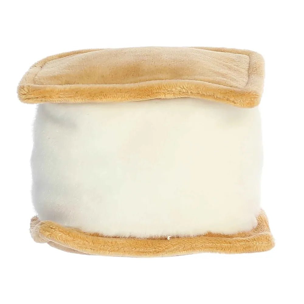 Toastee S'more est une peluche ressemblant à un s'more, avec une couche supérieure et une couche inférieure grillées, fourrées de chocolat riche et de guimauve moelleuse entre les deux. Son adorable petit visage souriant aux joues roses et ses deux douces mains en peluche sont parfaites pour faire des câlins chaleureux.