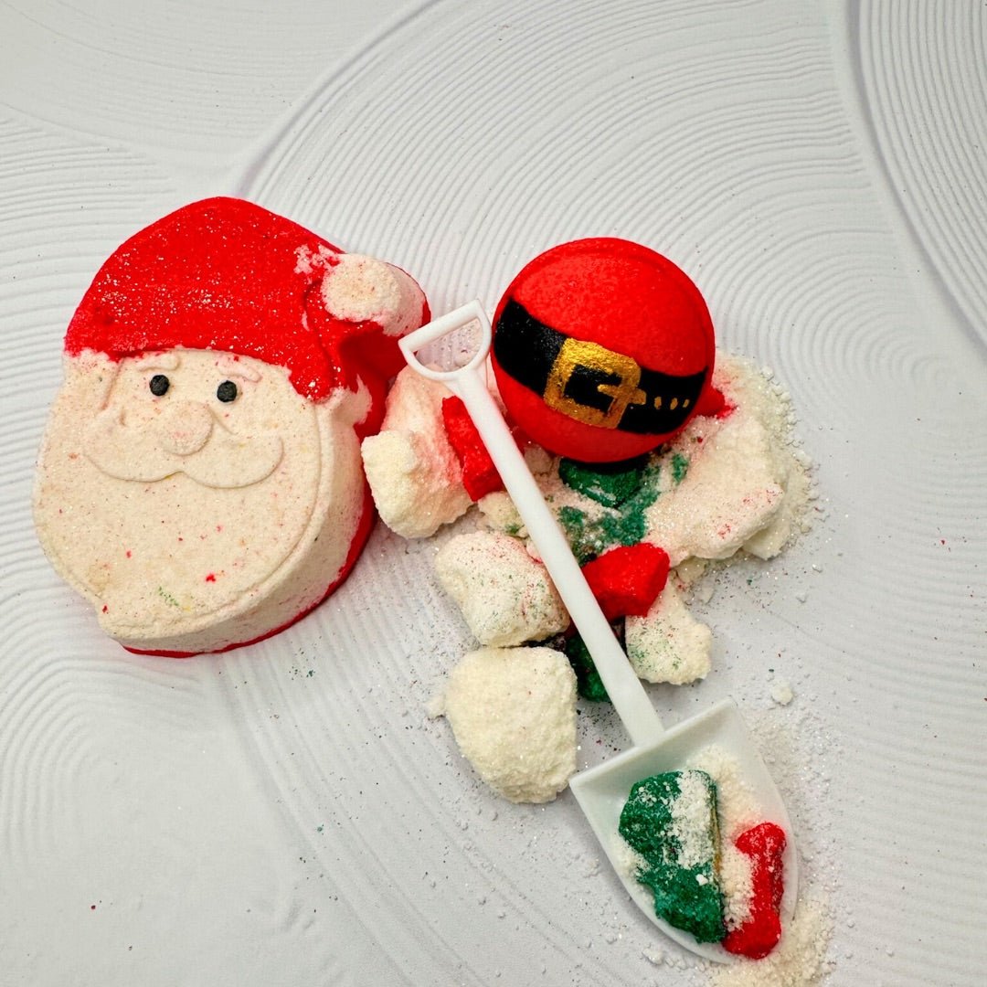 • Comprend: une bombe de bain du Père Noël, une petite bombe de la ceinture du Père Noël, une petite pelle, de la poudre effervescente.
