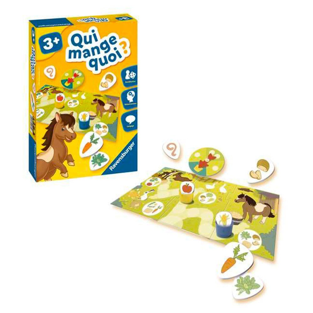 Les enfants sont fascinés par les animaux, et veulent tout savoir de leur mode de vie. Le jeu « Qui mange quoi ? » leur propose de découvrir les animaux de la ferme et leur mode d'alimentation
