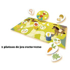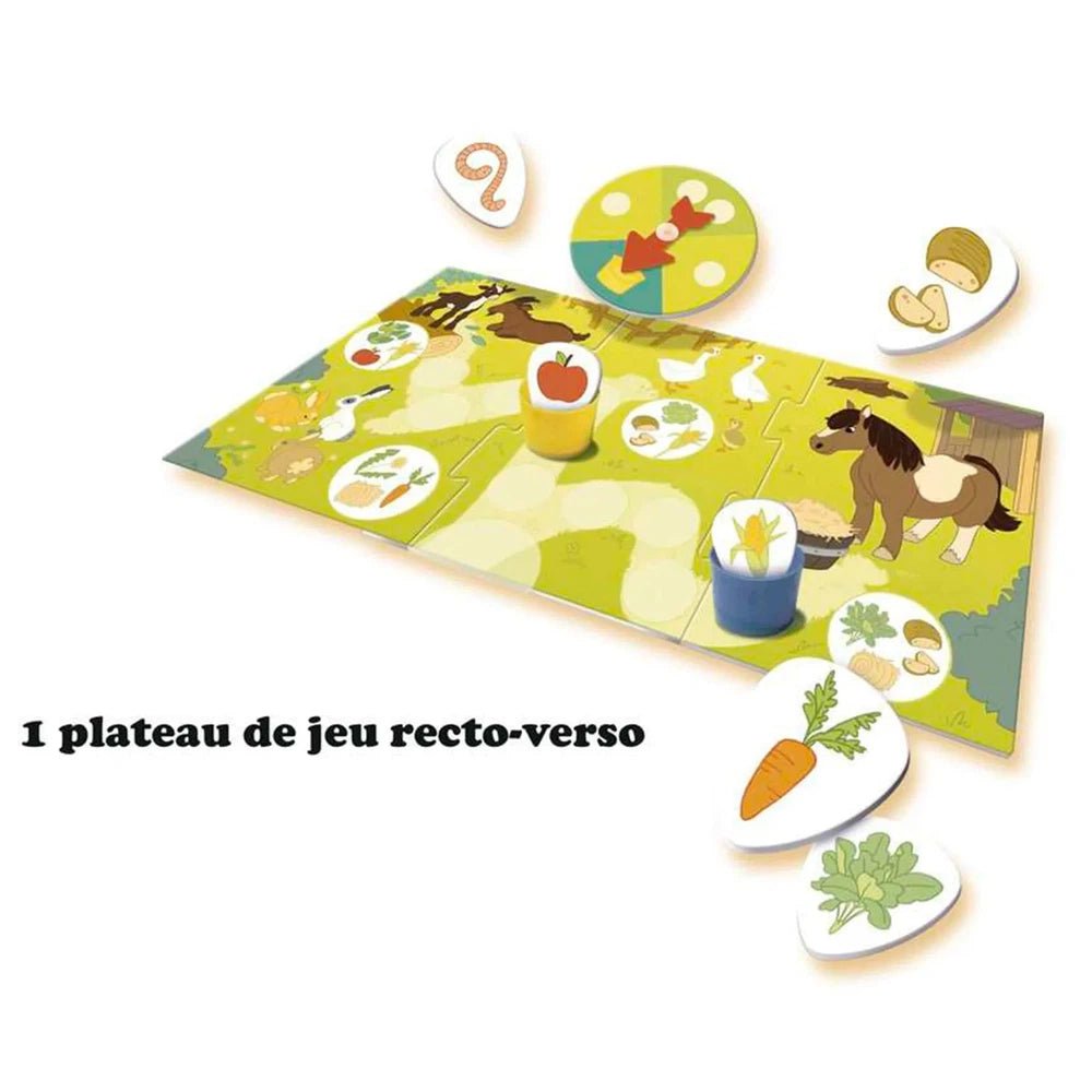 Tout au long de leur progression sur le plateau de jeu, ils s'amusent à identifier les aliments et jouent à nourrir les 8 animaux à l'aide de leurs seaux.