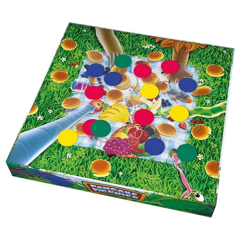 Pancake PicNic est un jeu d’adresse pour toute la famille où vous allez tenter de lancer les pancakes sur la nappe de pique-nique au fond de la boite. Pour pimenter le jeu, chaque carte animal vous donnera une contrainte de lancer différente : un œil fermé pour la taupe ou avec votre mauvaise main pour le manchot par exemple. Les lancers s’enchainent jusqu’à ce que l’un des joueurs ait réussi avec mettre tous ses pancakes sur la nappe de pique-nique. Il est alors déclaré grand gagnant de la partie.