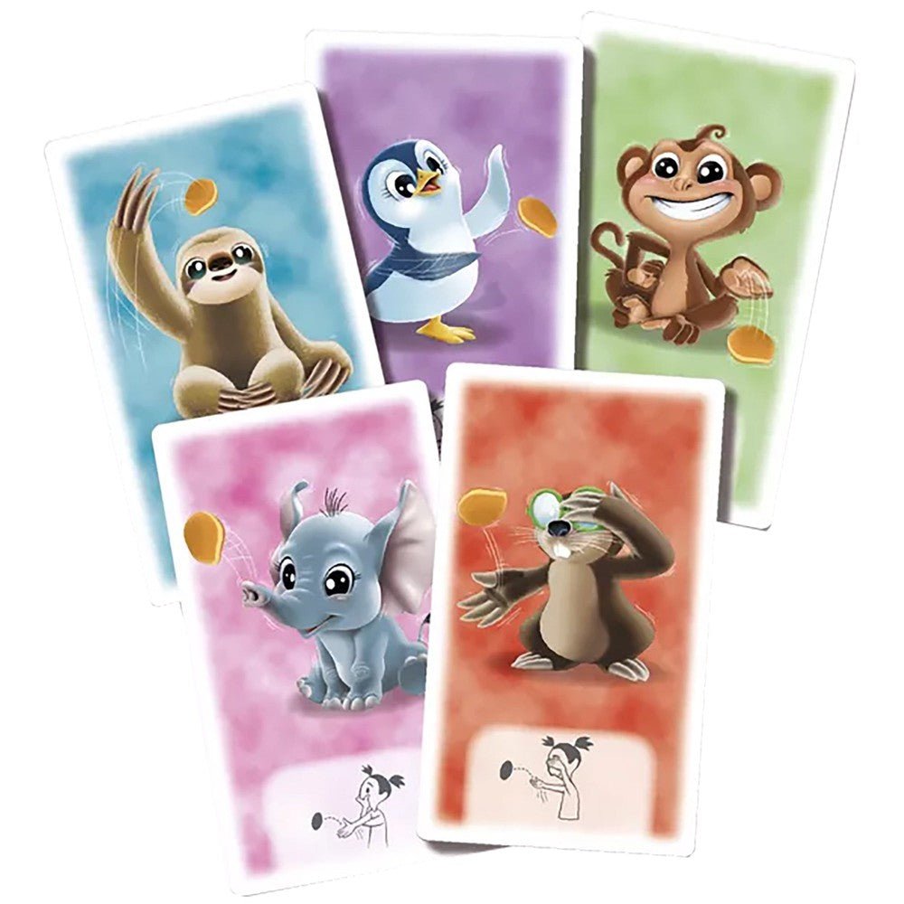 - Contenu : 1 tapis adhésif, 28 pancakes adhésif, 42 cartes animaux, 1 règles du jeu