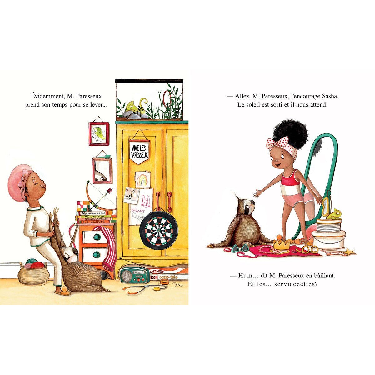 Il fait soleil. Il fait chaud. Sasha a tout organisé pour aller se baigner avec son meilleur ami! Mais M. Paresseux met une éternité à se préparer (il n’est jamais pressé) et Sasha n’aime PAS attendre. Apprendra-t-elle à être patiente, ou sa mauvaise humeur gâchera-t-elle cette activité estivale?