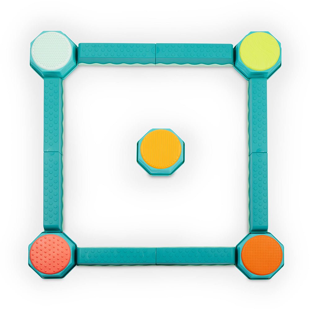 Discover our incredible Balance & Build Set! This set includes 5 octagonal modules with different sensory surfaces, which connect to beams to allow children to walk in balance. The configuration possibilities are endless, providing a varied and fun play experience.