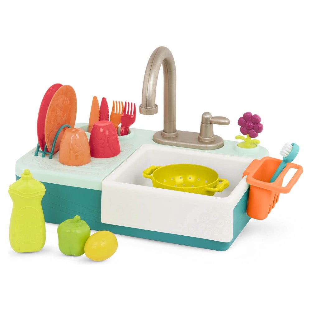 Play house with a realistic kitchen sink set that features a colorful feature!