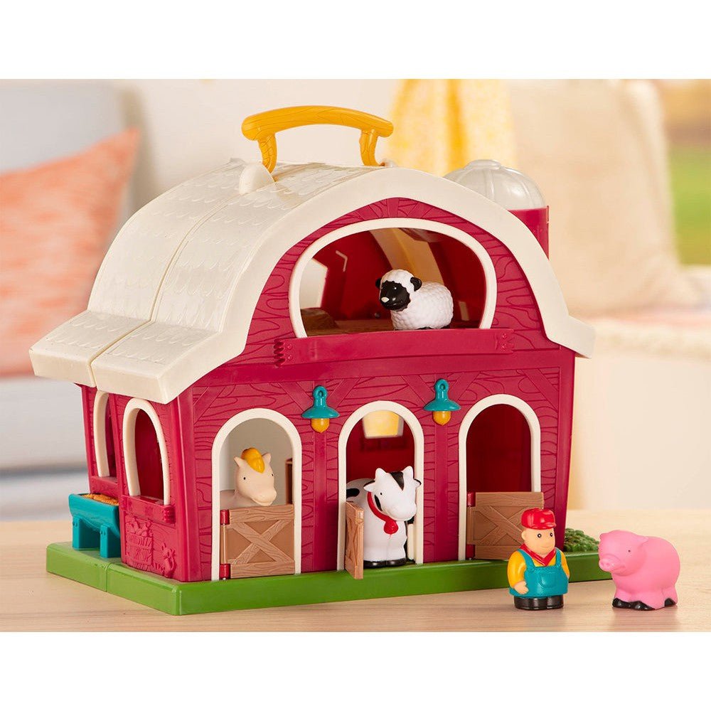 There are doors to open, windows to look through, and a sturdy handle to carry this barn with you anywhere!