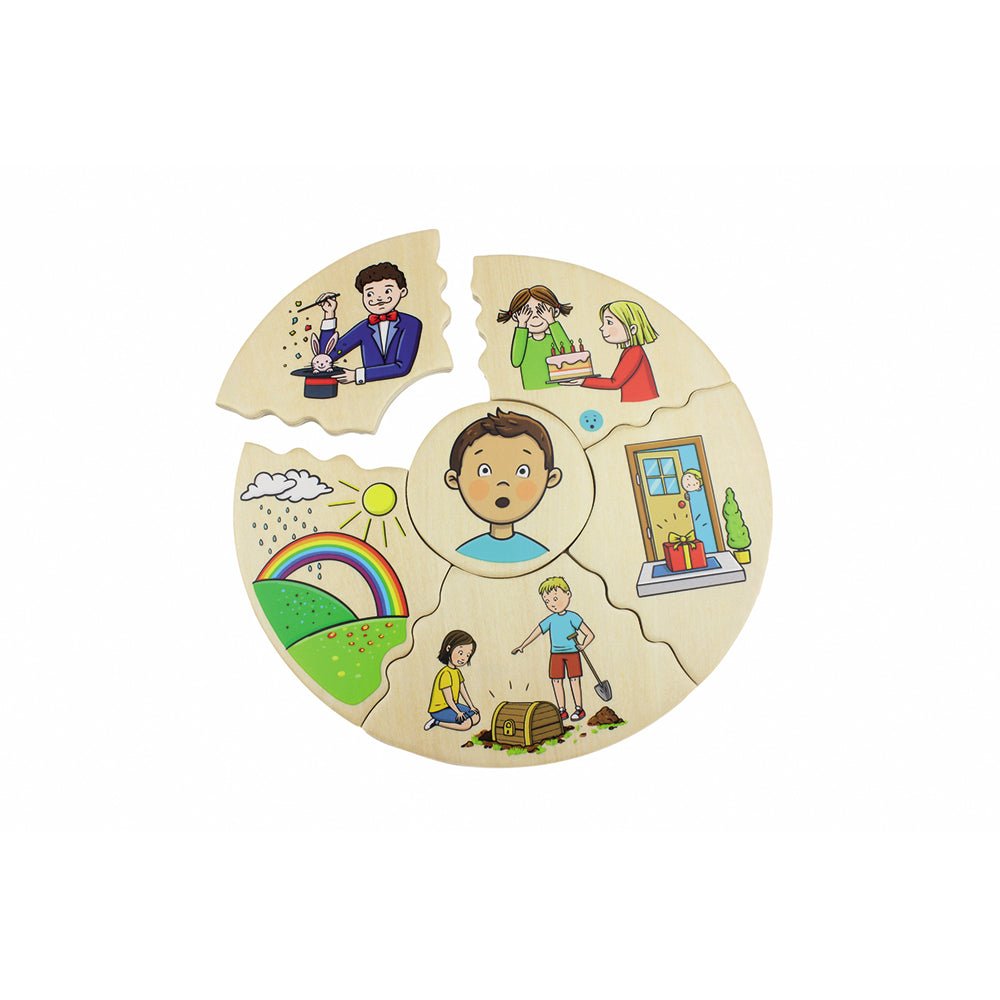 This 30-piece puzzle develops and reinforces social-emotional learning skills, while developing logical thinking and communication skills. It includes 5 levels with corresponding emotions.