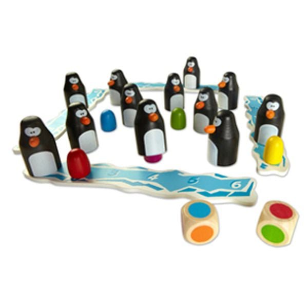 Our penguins are ready to play with you. Roll the colored dice and find the matching eggs hidden under the penguins. The first player to collect 6 penguins and their eggs on their iceberg wins. Memory skills and a little luck will help you win this exciting expedition to the South Pole.