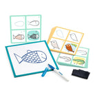 • Contents: 1 erasable board, 1 dry erase marker, 1 wiping cloth, 24 designs (12 double-sided printed cards).