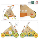 This attractive activity cart is particularly well-suited for learning to walk. Thanks to its height-adjustable handle (from 46 to 53 cm), it grows with your child and can be used from 12 months to 3 years old.