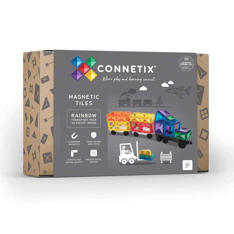 As an open-ended, expandable toy, the Connetix building set will grow with your mini as their play becomes more complex. Featuring a train/truck base and two car bases, this set also includes a variety of magnetic tiles to create lots of vehicles!