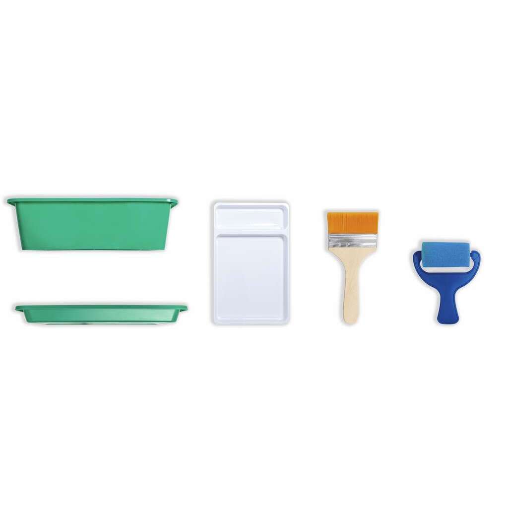- Comes with essential accessories including a plastic tray with lid, a foam paint roller, two paint trays, two paper clips and three leaf-shaped paper clips.