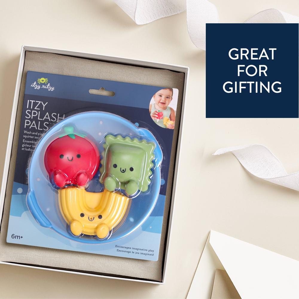 With Itzy Splash Pals , bath time is bursting with imagination and discovery. These adorable, easy-to-squeeze food-shaped bath toys, complete with a splash strainer, invite baby to play, experiment, and have fun in the water. Perfect for stimulating fine motor skills and coordination, they transform every bath into an endless sensory adventure.