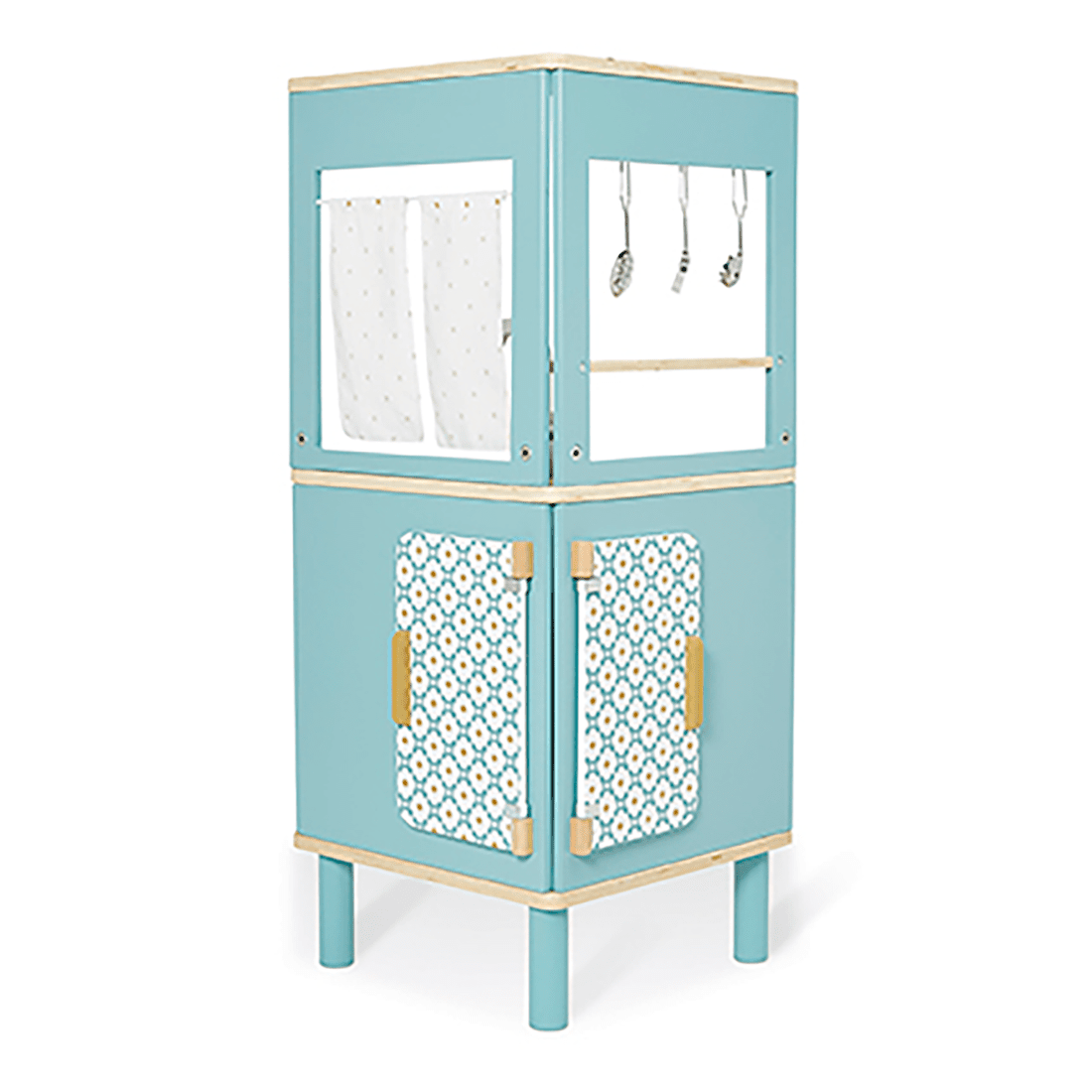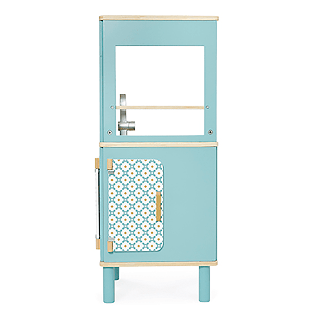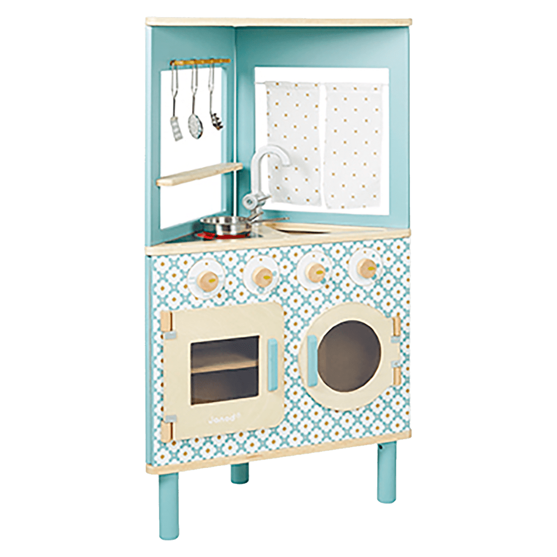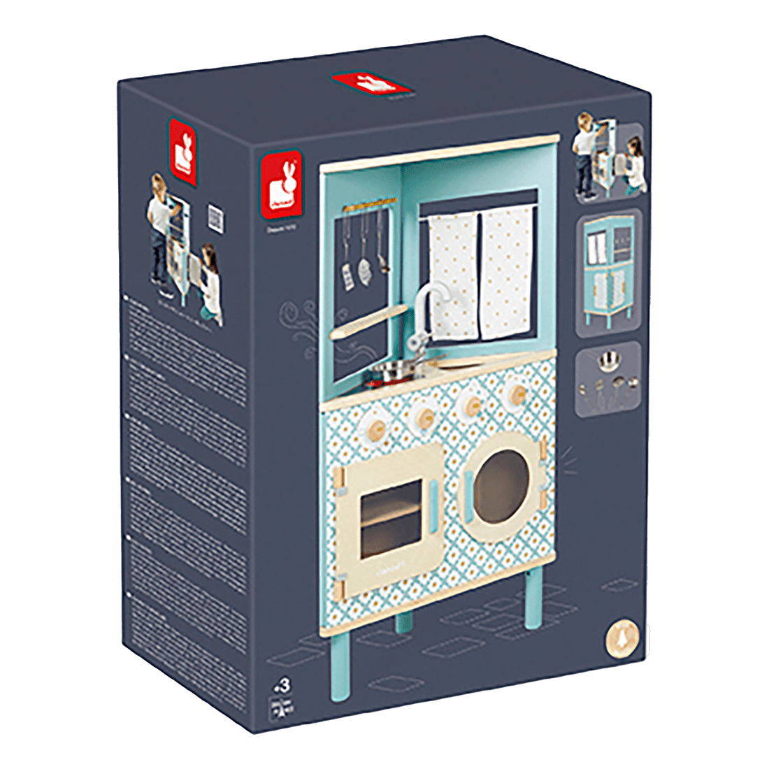 The TRIO kitchen is designed with generous proportions, perfect for small spaces. Its unique and clever shape allows children to play all around it, and gives parents the option of easily finding a place for it in a corner! Attractive cement tile patterns and soft colors are essential for staying on trend!
