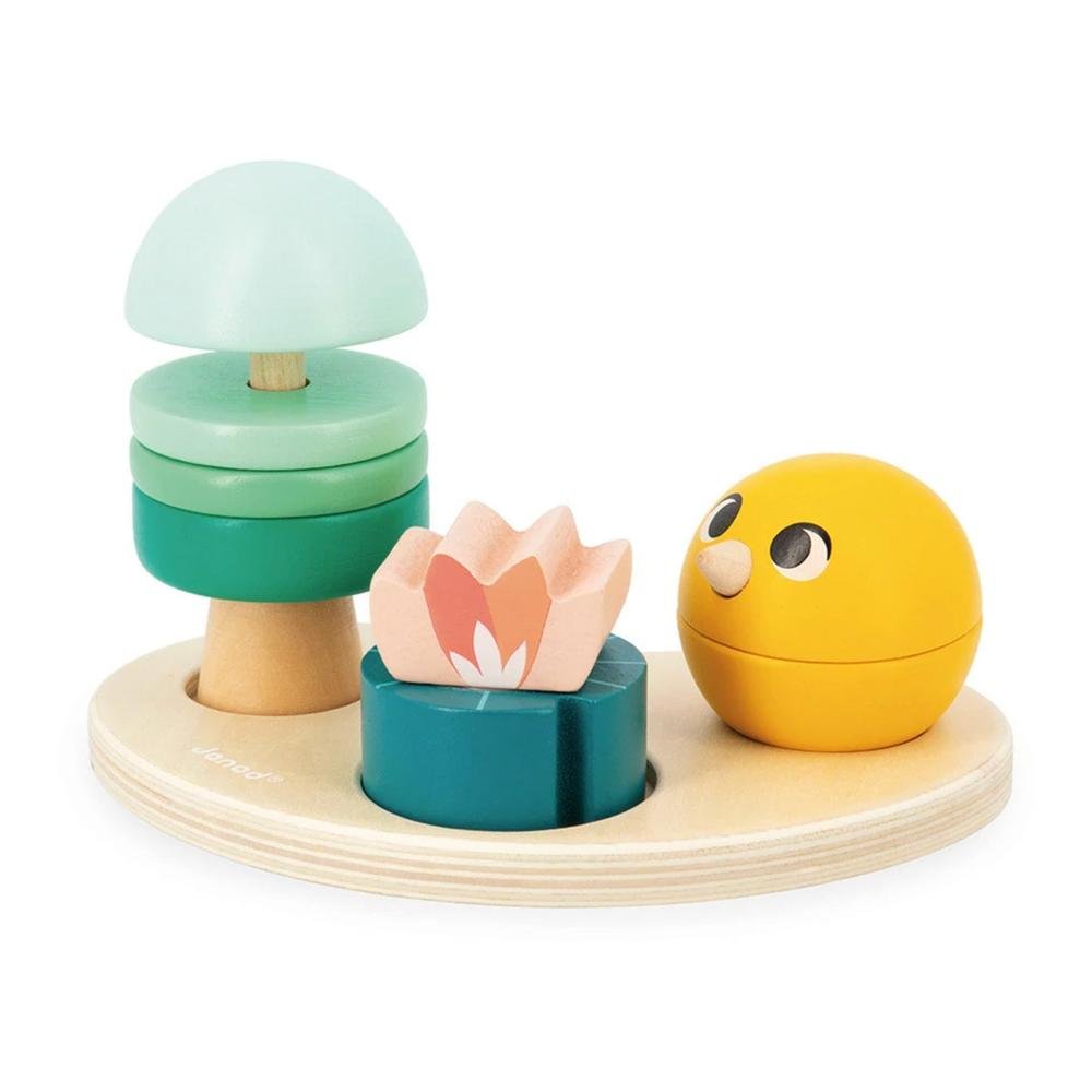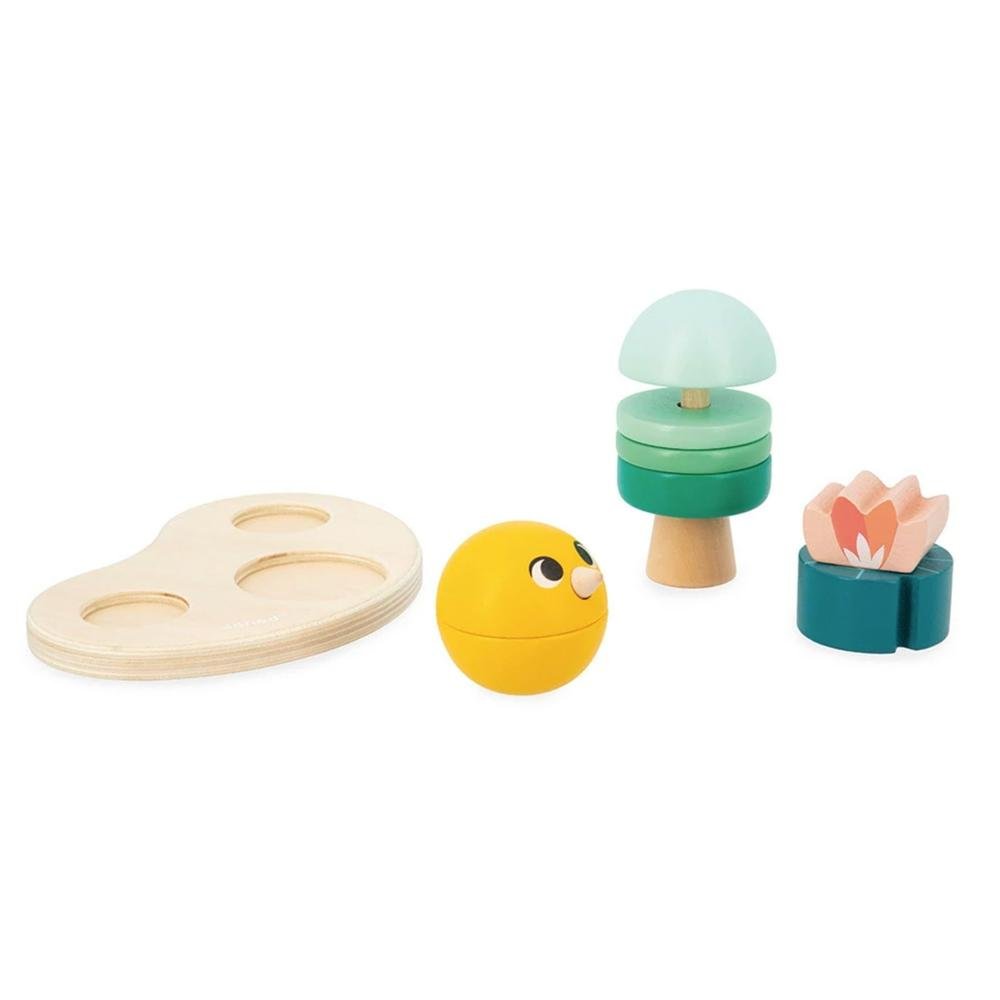 Also included in this playset is the musical sensory station, which invites children to discover sounds: the tree goes "Tac tac," the spinning water lily goes "Cric cric," and the little bird goes "Cui cui." A sound toy to play with again and again!