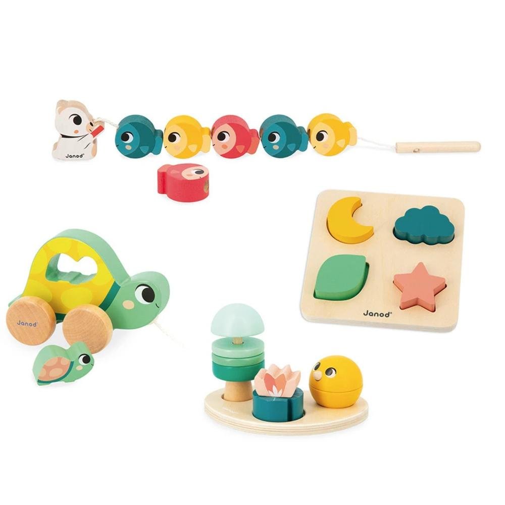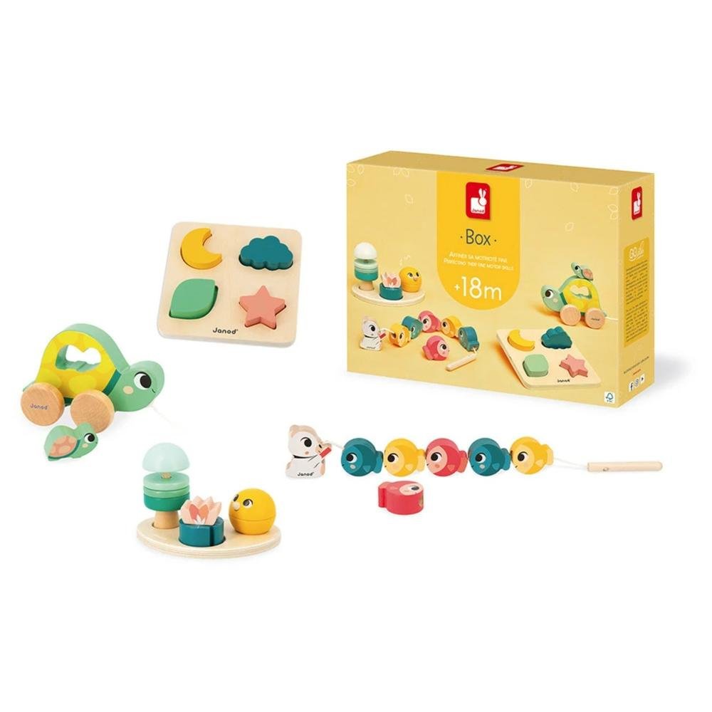 Designed specifically to refine fine motor skills, this baby box contains 4 fun developmental toys.