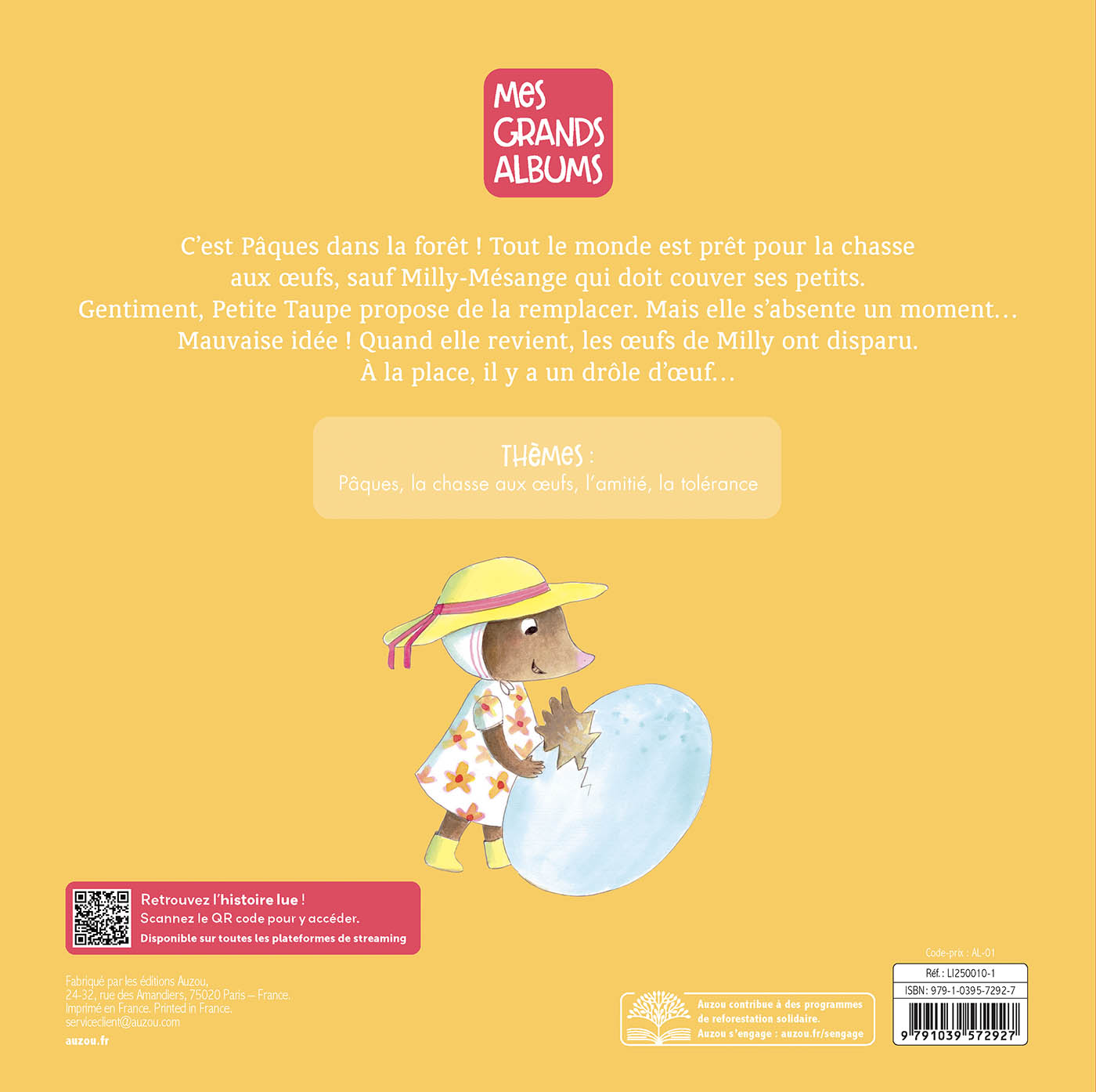 Today, Little Mole and his friends are celebrating Easter in the forest! But nothing goes as planned when he discovers a strange egg in Milly-Titmouse's nest... and especially when his eggs have disappeared! So the forest friends set off on a hunt.