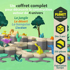 The pieces are designed for toddlers with easy-to-grip contents. The materials are primarily sourced from renewable resources, manufactured in Europe, and made from bio-sourced materials: wood fibers and bio-based plastic.