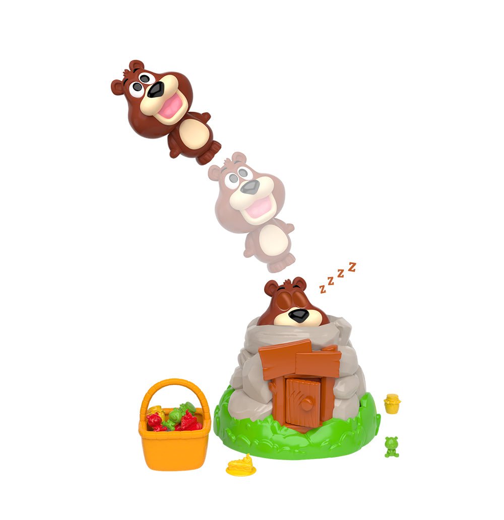 Papa Bear has fallen asleep and forgotten his basket! Roll the die, open the door, and tickle his tummy! If he stays asleep, the cubs can steal food from his basket!