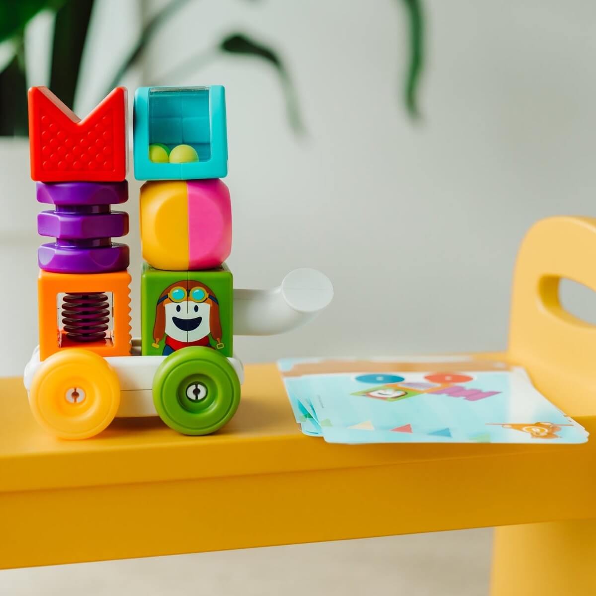Thanks to the double-sided construction base, you will learn the joys of magnetism, as well as the concepts of above, below, left and right.